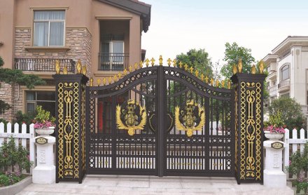 現如今的鋁藝別墅大門的外表采用了金屬油漆進行保護,一般運用的油漆與成效大致有三種:1.硝基漆的功能:快干、硬度高、耐磨、耐水、能夠打磨拋光、易修復、不耐堿、耐熱、耐寒、涂飾工藝復雜、施工勞動強度大、用途:用于底漆、面漆。2、聚酯漆的功能:色彩淺、通明、漆膜豐滿亮光、硬度高、耐腐、耐潮、耐溶劑、耐磨、保光、保色性良好、并且有一定的耐熱性和耐溫變行。3、丙烯酸樹脂漆功能:色淺、耐熱功能好、干燥快、耐腐蝕、漆膜亮光、堅硬、附著力好。,  1、別墅大門的生產工藝過程。,  要按期除掉鐵藝陽臺欄桿表層的灰塵,選用純棉織品的抹布,蘸上性質溫順的清潔劑,靜靜擦拭。關于凹陷處的灰塵,可用細軟羊毛刷沿著縫隙刷掉。將欄桿放置在其他硬物不常遇到,盡量防止外力的磕碰撞傷,更不能用材質堅硬的物品撞擊敲打,這樣會使漆層起殼和鍍鉻層零落。,  四、地面中間突出物在關閉時會碰到上下擋。