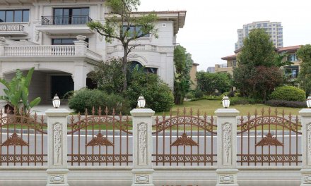 可拆裝,無(wú)焊接制作安裝簡(jiǎn)便快捷,采用專利的連接件,大大提高安裝效率。運(yùn)輸便捷,一定程度上節(jié)省了運(yùn)費(fèi)。, 一、門框放入門洞時(shí)必須上下平行左右垂直,如門洞比門框大一公分以上時(shí),必須用石塊或木塊將門框的膨脹螺絲墊實(shí),在門框左上右下先打膨脹螺絲,不要擰緊,羅馬柱的門應(yīng)先裝羅馬柱到門框上,然后再放入門洞。, 為了避免金屬生銹,能夠按期用棉布蘸上少量的防銹油或縫紉機(jī)油擦拭表層局部,堅(jiān)持鐵藝欄桿光亮如新。, 高級(jí)鐵藝制作的表面裝飾效果漆色彩豐富,多采用進(jìn)口漆手繪,既古樸典雅,又時(shí)尚流行.最經(jīng)典的表面裝飾效果漆有青古銅色、紅古銅色、古銅金、黑色、銅金邊、白色金邊等。, 1、造價(jià)比較實(shí)會(huì)。